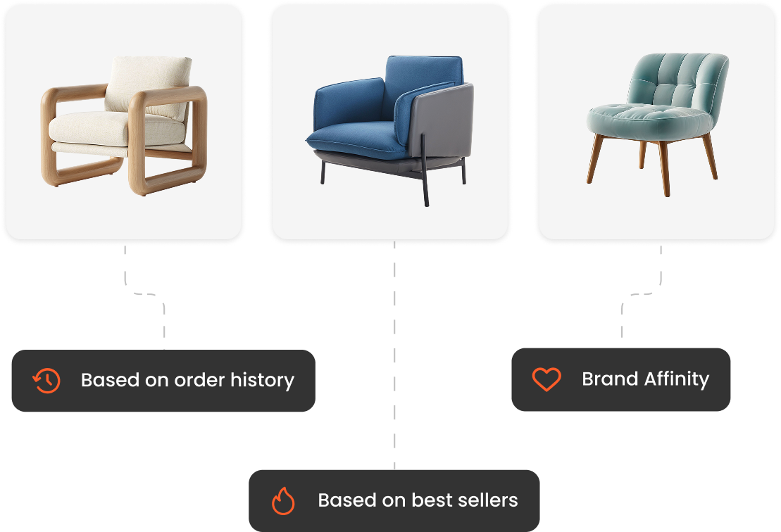 Powered by data from customer behavior, orders, and your entire catalog, our AI knows exactly which products to show each shopper. The result? More items in carts, bigger orders, and higher revenue—without increasing ad spend.